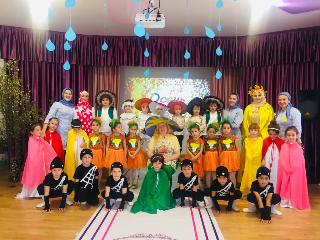Подготовка к мероприятию началась задолго до его начала. Дети с воспитателями разучивали стихи, песни, танцы про осень. В назначенный день в украшенном зале собрались гости. Захватывающий сценарий, подготовленный ведущей праздника - воспитателем Хасуевой Б.Х., не давал расслабиться детям ни на минутку. В гости к ребятам приходили Осень, Лесовичок, Маша. Дети водили хоровод, пели песенки об осени, играли в веселые игры, танцевали.