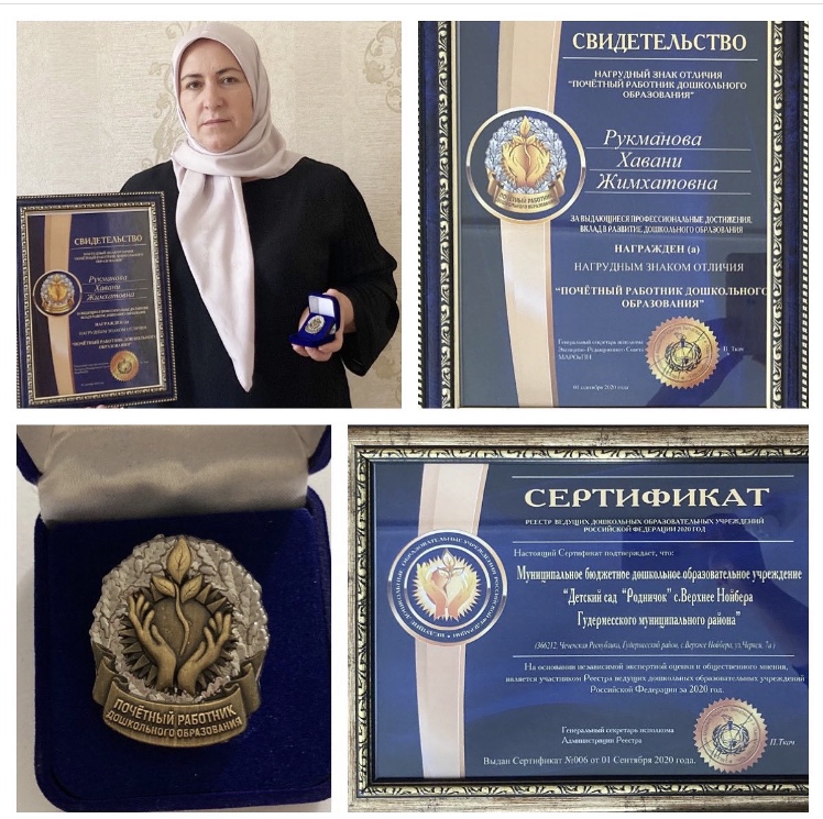 28.09.2020За победу во Всероссийском открытом смотр-конкурсе «Детский сад года 2020», МБДОУ Детский сад «Родничок» выдан сертификат о включении в реестр ведущих дошкольных образовательных учреждений Российской Федерации 2020 г. Заведующий награждена нагрудным знаком «Почетный работник дошкольного образования».