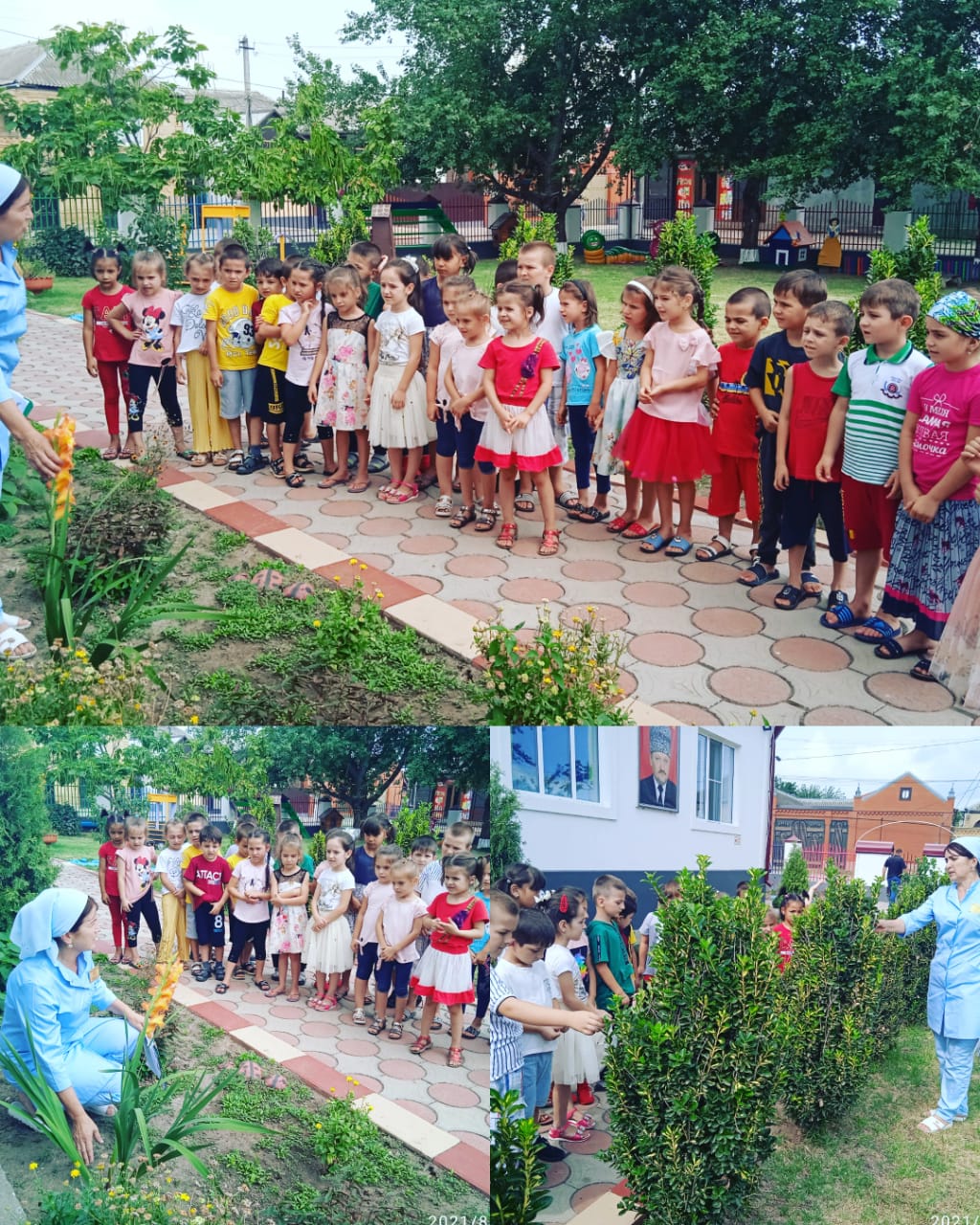 05.08.2021Цель: Познакомить детей с разнообразием цветов, условиями, необходимыми для их роста, и влиянием на эмоциональное состояние человека; воспитывать ответственность, желание участвовать в уходе за растениями; приучать соблюдать чистоту и порядок на участке, доставить детям радость и удовольствие от общения с цветами.