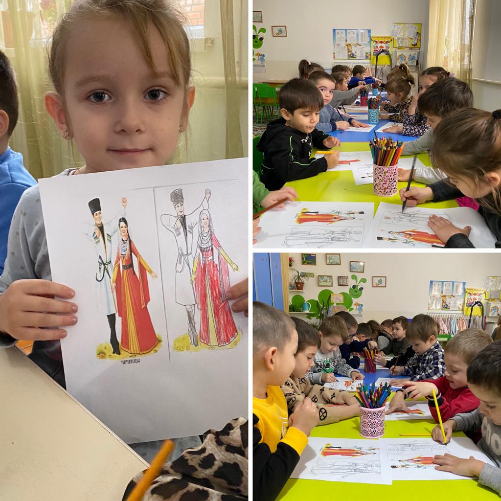 Цель: Учить видеть и передавать красоту национального костюма.Воспитывать интерес и уважение к национальным традициям.