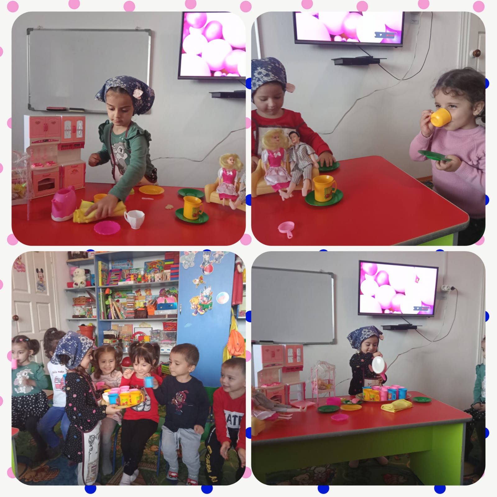 Воспитатель Х.М.Джабраилова провела с детьми игру по трудовому воспитанию в младшей группе по теме : «Накроем стол для кукол».