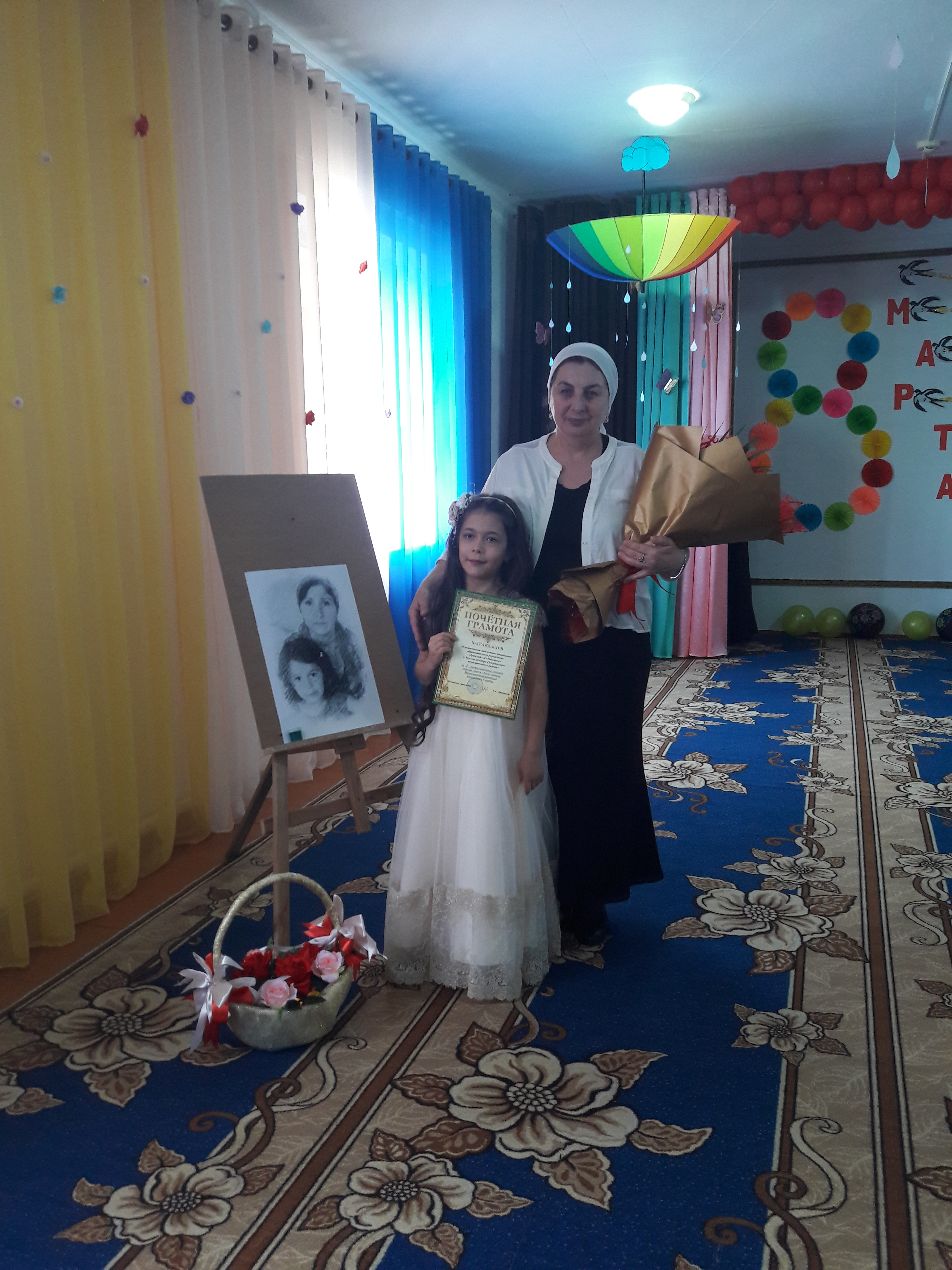 В МБДОУ Детский сад "Седарчий" с. Н. Нойбера Гудермесского муниципального района, проходил конкурс "Весна пришла - Мамин праздник принесла" между детскими садами Гудермесского района, где участвовали детские коллективы из шести муниципальных детских садов: МБДОУ "Детский сад "Улыбка" с. Кошкельды, МБДОУ "Детский сад "Родничок" с. В. Нойбера, МБДОУ "Детский сад "Солнышко" с. Н. Нойбер, МБДОУ "Детский сад "Седарчий" с. Н. Нойбер, "Даймохк" с. Гордали, "Ласточка" с. Ишхой-Юрт. Наша воспитанница Джанаралиева Мархет представила стихотворение "Говорил нерожденный ребенок". Жюри не смогли выбрать лучшего из лучших и решили всех участников наградить 1 местом.