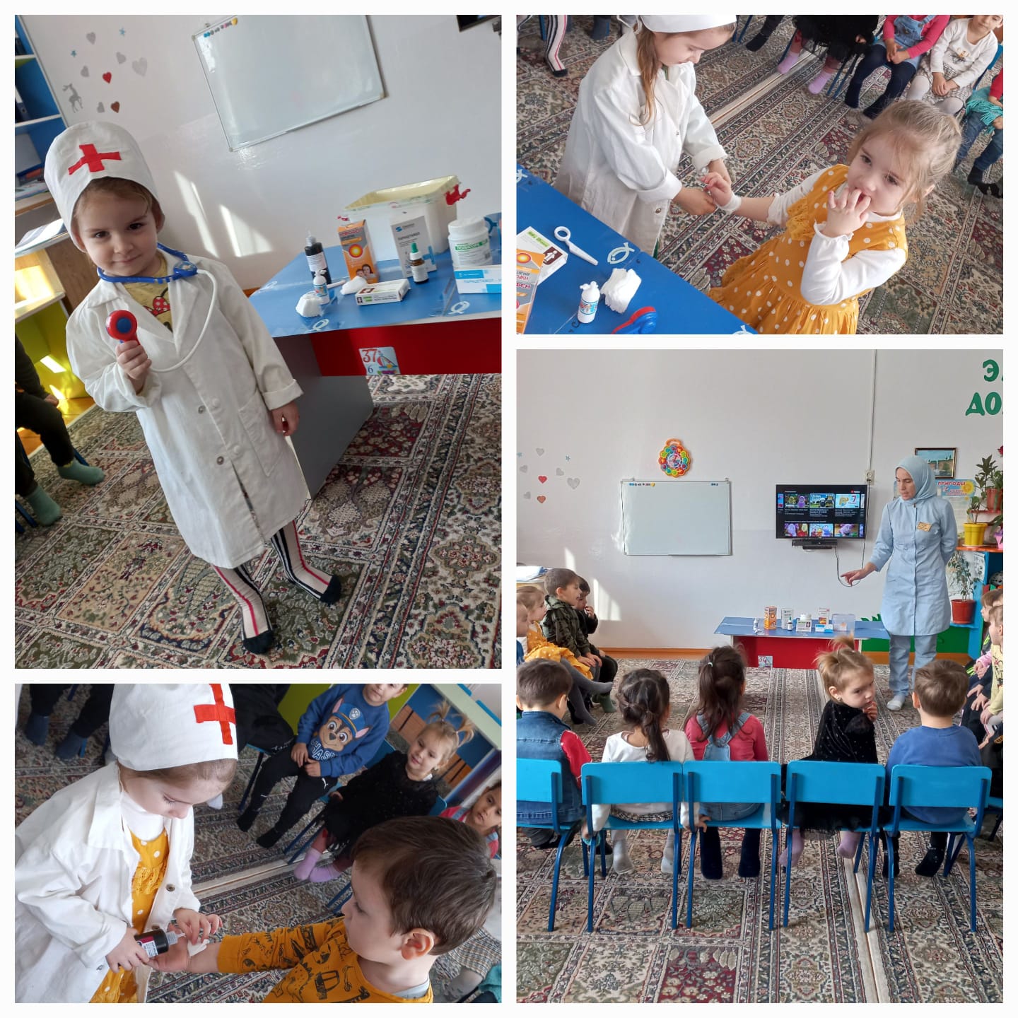 Цель: Познакомить детей с профессией врача-педиатра, медсестры, закрепить навыки культурного поведения в общественном месте, развивать диалоговую речь.