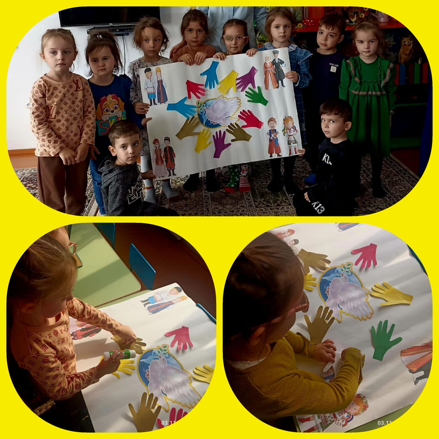 В средней группе воспитатель вместе с детьми создала коллаж дружба народов.