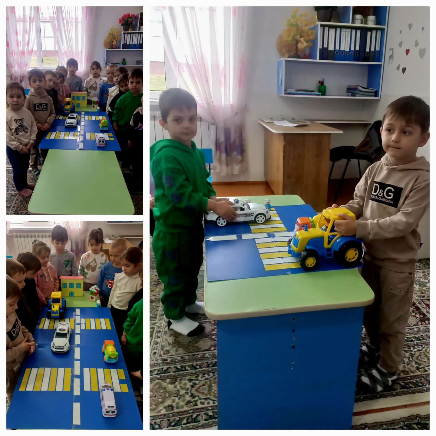 Цель:формировать у детей основы безопасного поведения на улице,совершенствовать знания детей о правилах дорожного движения.