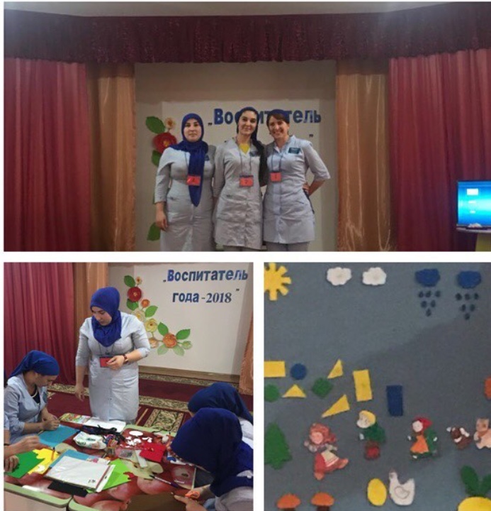 В 2017-2018 учебном году внутри садовском конкурсе «Воспитатель года-2018» приняли участие 3 воспитателя. Конкурс проходил в три этапа. В первом туре педагоги представляли в электронной форме портфолио и визитную карточку, на втором – показали мастер-класс и педагогическую деятельность с детьми, на третьем - круглый стол. В ходе финальных испытаний педагоги представили мастер-классы, где раскрыли содержание работы по своим авторским программам и продемонстрировали конкретный методический прием обучения и развития детей дошкольного возраста, а так же стали участниками педагогического брифинга.