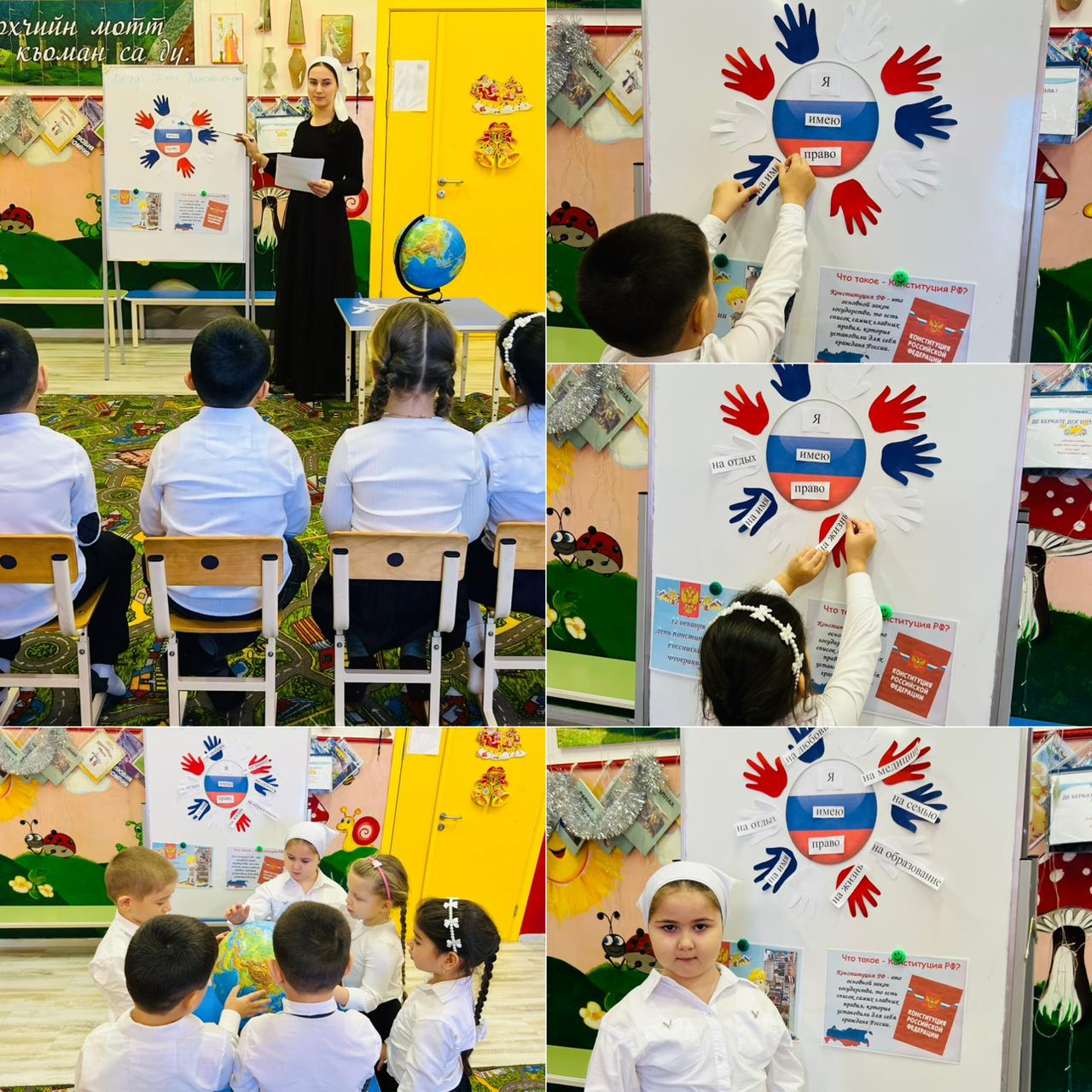 В средней группе "Непоседы" также в старшей и подготовительной грппах детского сада состоялись беседы, посвещенные "Дню Конституции РФ"